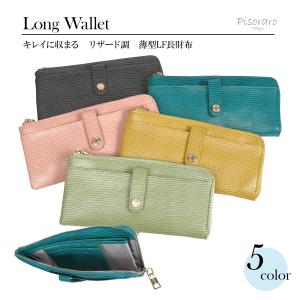 ☆SALE☆ピソラロ Pisoraro リザード調 薄型Lファスナー長財布 ロングウォレット 長財布 スリム財布 プレゼント ギフト 5color 送料無料