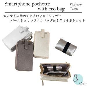 ピソラロ Pisoraroパールシュリンクエコバッグ付きスマホポシェット スマホポーチ お財布ポシェット マチ幅広エコバッグ スマホポシェット 3color 送料無料