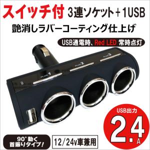 12V 24V 車用 USBソケット USB付 ダイレクトスイッチ付 3連ソケット 2.4A 艶消しブラック DL-77