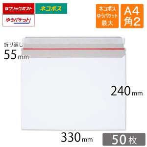 厚紙封筒 A4 角2 ネコポス ゆうパケット最大 クリックポスト 330×240mm 開封ジッパー付 50枚