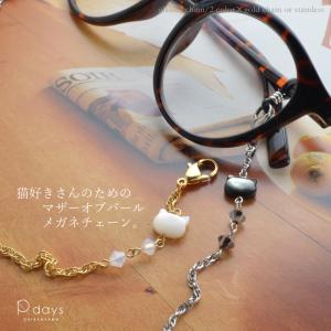 猫好き メガネチェーン マスクチェーン マザーオブパール パール レディース ゴールド シルバー ステンレス おしゃれ シンプル 眼鏡チェーン サングラス 日本製