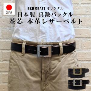 【日本製 本革 ベルト】 茶芯 レザー 幅広 3.8cm 牛革 真鍮バックル 無垢ブラス 高品質 革職人 仕上げ カジュアル ビジネス フォーマル デニム スーツ対応