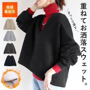 1971円 クーポンで! 裏起毛 トップス レディース トレーナー スウェット 黒 秋 冬 おしゃれ 長袖 無地 コットン混 Vネック[郵3]^t1131^