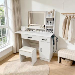 ドレッサー オシャレ LEDミラー 化粧台 北欧風 鏡台 白 ホワイト 姫系 スツール付き デスク おしゃれ 椅子付き コスメ台 女優ミラー 70CM*47.5CM 広い鏡