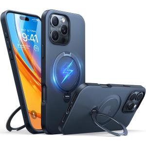 iPhone 16 Pro ケース TORRAS 正規品 リング付き マグネット搭載 MagSafe対応 半透明 マット ゼンマイ式スタンド Ostand Spin ブラック