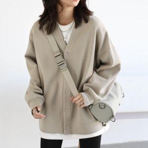 スウェット カーディガン レディース 前開き Vネック トレーナー トップス ビッグシルエット ジャケット カットソー 秋 春 長袖