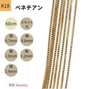 18金 ベネチアン チェーン ネックレス 60cm 幅0.7mm 0.8mm 1.0mm 1.2mm 1.4mm K18 YG スライド式 RMジュエリー