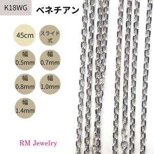 18金 ホワイトゴールド ベネチアン チェーン ネックレス 45cm 幅0.5mm 0.7mm 0.8mm 1.0mm 1.4mm K18 WG スライド式 RMジュエリー