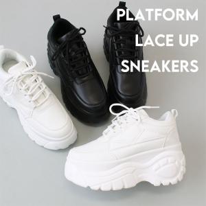 厚底ソール ローカット スニーカー レディース レースアップ 脚長 黒 白 le-1536