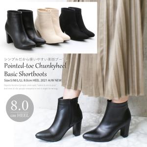 【爆買】チャンキーヒール サイドジップ アーモンドトゥ ショートブーツ レディース 太ヒール 黒 美脚 le-633