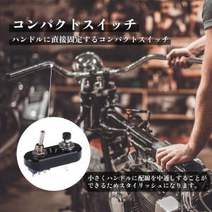 バイク シルバーメッキ コンパクトスイッチ ウインカー ON-OFF-ON プッシュスイッチ ブラックキャップ付き スイッチボックス