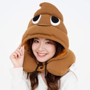 SAZAC サザック 2909 うんち ネックピロー トラベル 旅行用 枕 飛行機用 昼寝 快眠 新幹線 U字型 低反発 首枕 キャラクター 雑貨 フード付き