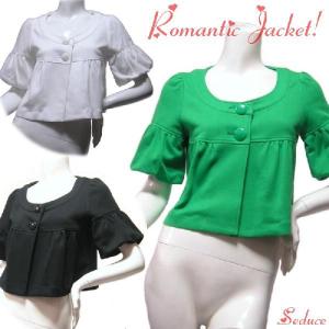 ●アウトレット●ボレロジャケット パフスリーブ半袖5部丈5部袖フォーマルジャケット (グリーン・ホワイト・ブラック)