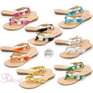 ●アウトレット●フラットサンダルキラキラビックジェムストーンゴージャスLASeduceブラックグリーンイエローピンクオレンジターコイズホワイト