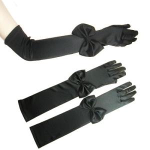 ロンググローブサテン肘上リボン付きお姫様プリンセスパーティードレスフォーマルドレスに!ロング手袋ブラック黒Seduce
