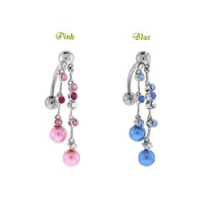 パール×クリスタルジェムへそピアス (ピンク・ブルー)