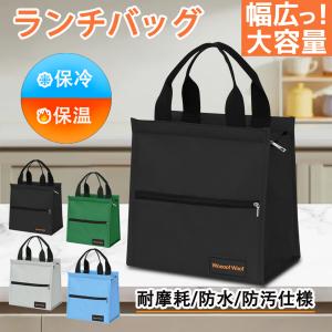Woooof Woof ランチバッグ 大容量 保冷 お弁当バッグ 弁当箱 袋 フロントジッパーポケット 持ち手つき 内側断熱 軽量 耐久性 男女兼用 通勤 通学 (ブラック)