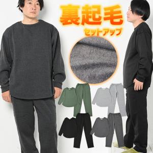 セットアップ 上下組 上下セット 部屋着 ルームウェア パジャマ トップス パンツ メンズ 裏起毛 長袖 おうち時間 ウエストゴム