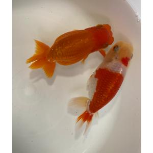 らんちゅう 更紗 鼻先赤、右目から腹に白 12cm
