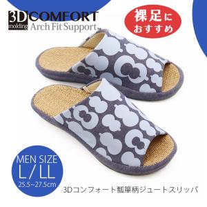 スリッパ ルームシューズ 冬 室内 おしゃれ 冬 暖かい 来客 3Dコンフォートメンズ瓢箪柄ジュートスリッパL LLサイズ