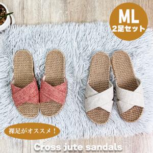 スリッパ ルームシューズ 室内 涼感ジュートクロスルームサンダルML2足SET