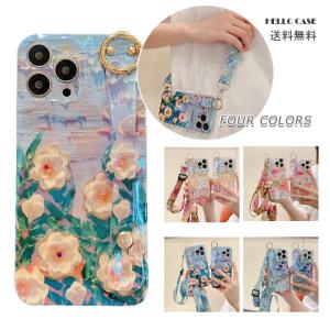 【お買い得 送料無料】iPhone 16 ケース iPhone 15 スマホケース iPhone 16 Pro 花柄ケース ハンドストラップ ネックストラップ 可愛い ハンドベルト
