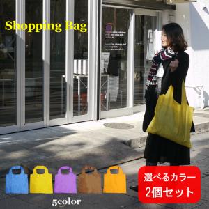 エコバッグ 2色セット ショッピング サブバッグ 無地 折りたたみ 買い物バッグ 大