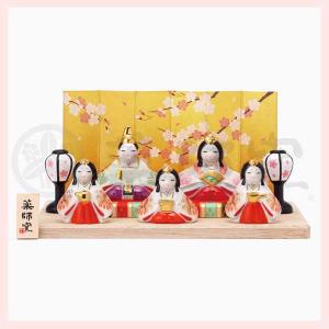 染錦 弥生飾り雛(平飾り) ※陶器,置物,ひなまつり,雛祭り,ひな人形,雛人形