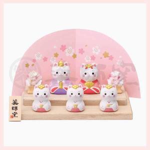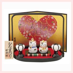 錦彩 ねこ飾り雛(平飾り) ※陶器,置物,ひなまつり,雛祭り,ひな人形,雛人形,キャット,猫