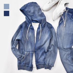 パーカー メンズ ジップパーカー スウェットセットアップ(別売) ユーズド加工 無地 ビター サーフ 春秋冬 青 紺 ブルー インディゴ M L XL LL 2L XXL 3L LLL