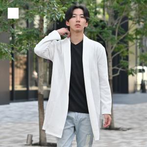 サマーカーディガン メンズ ロング 薄手 春夏秋 セットアップ(別売) 韓国ファッション モード 白 黒 ホワイト グレージュ ブラック プリーツ M L XL 23122