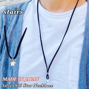 ネックレス メンズ 革紐 シルバー ロングネックレス チョーカー 日本製 革ひも シンプル シルバー925 星 スター プレゼント ペア stairs(ステアーズ) 送料無料