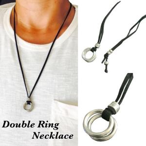 ネックレス メンズ 革ひも リングネックレス ダブルリングネックレス メンズネックレス シンプル レディースネックレス メンズアクセサリー ペア