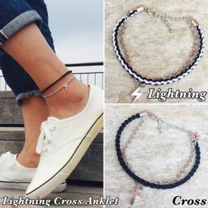 アンクレット メンズ クロス チェーン 2連 ライトニング メンズアンクレット レディースアンクレット ペア シルバー ブラック ホワイト プレゼント