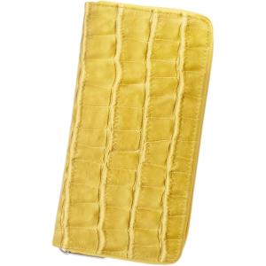 クロコダイル柄 ワニ柄 お洒落 高級感 長財布 ラウンドファスナー 財布 メンズ 金運 開運 金運アップ プレゼント 黄色 イエロー