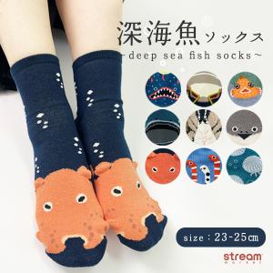 靴下 レディース おしゃれ クルー クルーソックス 深海魚 グッズ メンダコ ダイオウグソクムシ サメ ポイント利用 23-25cm ポイント利用 ゆうパケット6点まで可