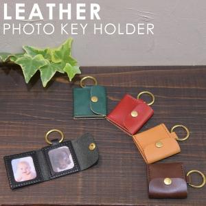名入れ 刻印付き ヌメ革 フォトキーホルダ 写真ホルダー 写真ケース フォトフレーム レザー メッセージ 真鍮 ギフト