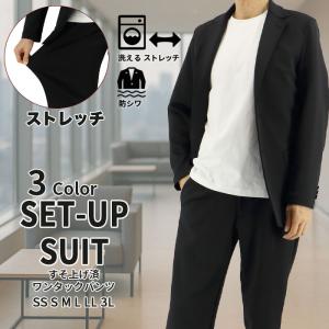 メンズスーツ ビジネス アジャスター付き ワンタックスラックス 黒 シャドーストライプ ストレッチ リンクルフリー 2022 秋冬 2ITC31-20