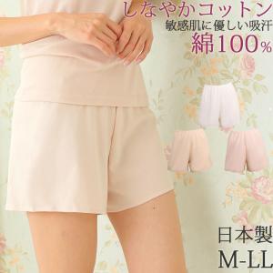 ペチパンツ 綿100% 涼しい 汗染み防止 パンツ ペチコート 透けない 対策 尻 汗 吸汗 夏 レディース ズボン下 コットン [M:1/2] ll L M 大きいサイズ 日本製