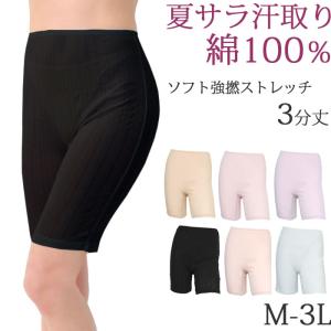 ペチパンツ 綿100% 涼しい 汗染み防止 パンツ 涼しい ペチコート ロング 透け防止 尻 汗 吸汗 夏 レディース ズボン下 3分丈 [M:1/2] 大きいサイズ 3l ll L M