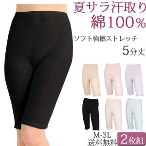 ペチパンツ 綿100% 汗染み防止 パンツ 涼しい ペチコート ロング 透けない 対策 お尻 汗 吸汗 夏 レディース ズボン下 5分丈 セット2枚[M:1/1]大きいサイズ3l-M