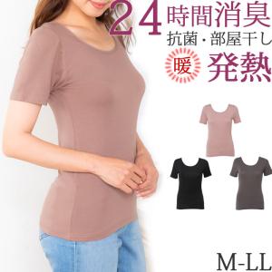 発熱インナー 消臭 あったかインナー レディース 冬 暖かい 半袖 tシャツ ロング丈 汗取りインナー 吸湿温感インナー [M:1/1] 大きいサイズ ll LM 薄手