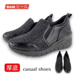 スリッポン レディース 軽い 厚底 スニーカー 2702 ブラック 黒 婦人靴 キラキラ ラメ入り おしゃれ カジュアル シューズ 軽量 軽い 履きやすい