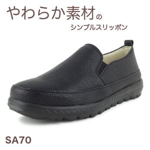 スリッポン シューズ レディース SA70 黒 ブラック 軽量 歩きやすい 靴 おしゃれ 婦人靴 柔らかい フラット