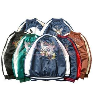 スカジャン メンズ 男女兼用 横須賀 刺繍 ブルゾン 鶴 サテン 光沢 カジュアル リバーシブル フライトジャケット レディース アウター 春 秋
