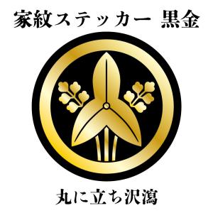 家紋ステッカー《丸に立ち沢瀉》大小2枚組 黒金 白塩ビ まつり 車 送料無料