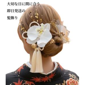 【髪飾りTata8】成人式 振袖 結婚式 卒業式 袴 着物 和装 七五三 白無垢 胡蝶蘭 蝶結び水引き タッセル 金箔 パール チュール ゴールド/白/シルバー68a