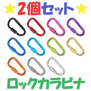 【2個セット】 Dリング ロックカラビナ D型 ロック付き キーホルダー アルミ合金