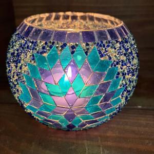 キャンドルホルダー モザイクガラス 丸形 マルチカラー カラフル 可愛い 丸形 オブジェ インテリア