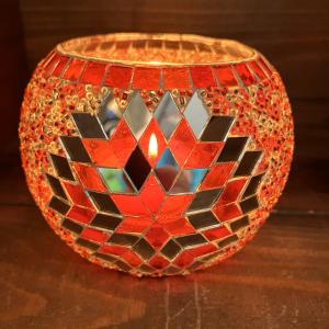 キャンドルホルダー モザイクガラス 丸形 レッド 可愛い 丸形 オブジェ インテリア